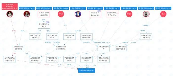 阿里巴巴间接持有申通14.65%的股权。数据来自企查查。