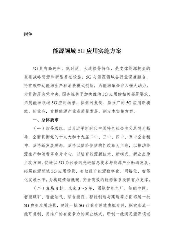 关于印发《能源领域5G应用实施方案》的通知