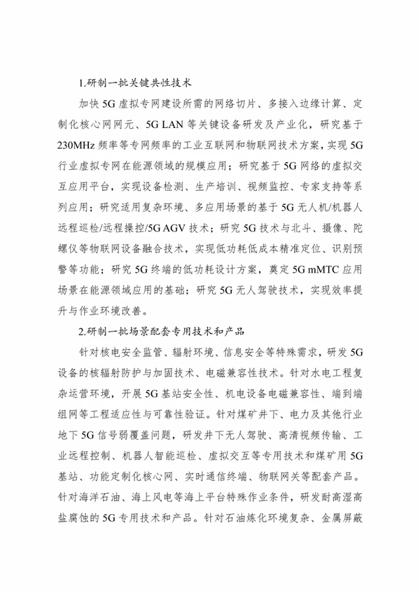 方案指出,未来3-5年,围绕智能电厂、智能电网、智能煤矿、智能油气、综合能源、智能制造与建造等方面拓展一批5G典型应用场景,建设一批5G行业专网或虚拟专网,探索形成一批可复制、易推广的有竞争力的商业模式。研制一批满足能源领域5G应用特定需求的专用技术和配套产品,制定一批重点亟需技术标准,研究建设能源领域5G应用相关技术创新平台、公共服务平台和安全防护体系,显著提升能源领域5G应用产业基础支撑能力。