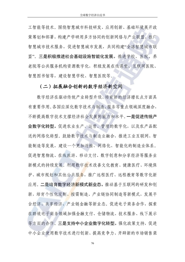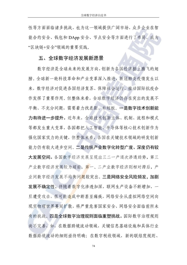 对于我国数字经济的战略取向与发展路径,白皮书提出,我国应立足产业基础并发挥市场活力,通过有效市场和有为政府实现相互促进。具体来说,我国应在数字经济发展中重点布局大市场+完整工业体系+充满活力的数字化创新,例如重点发展5G、人工智能、移动支付等产业。