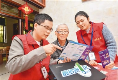 在浙江省湖州市长兴县夹浦镇丁新村,镇便民服务中心工作人员上门为老年人办理电子医保卡。 谭云俸摄(人民图片)通过一网通实现身份证线上办 ...