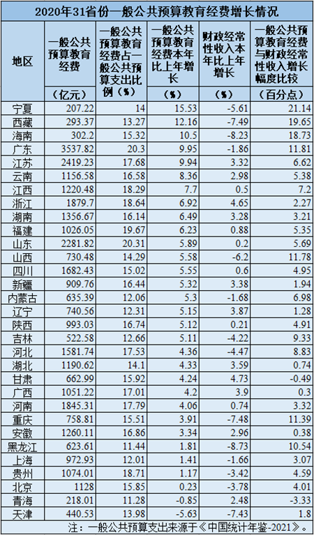 31省份2020年教育经费数据公布 这些地区对教育投入更大