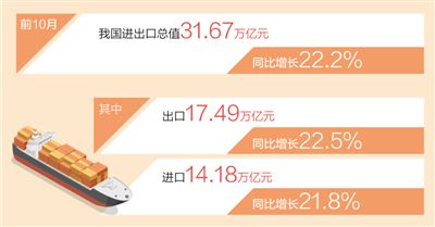 前10月我国进出口总值同比增22.2%(新数据 新看点)