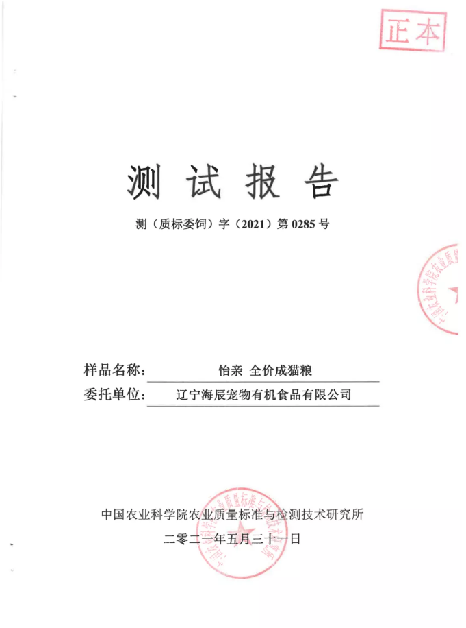 国家饲料质量监督检测中心抽检怡亲全系列产品:产品合格
