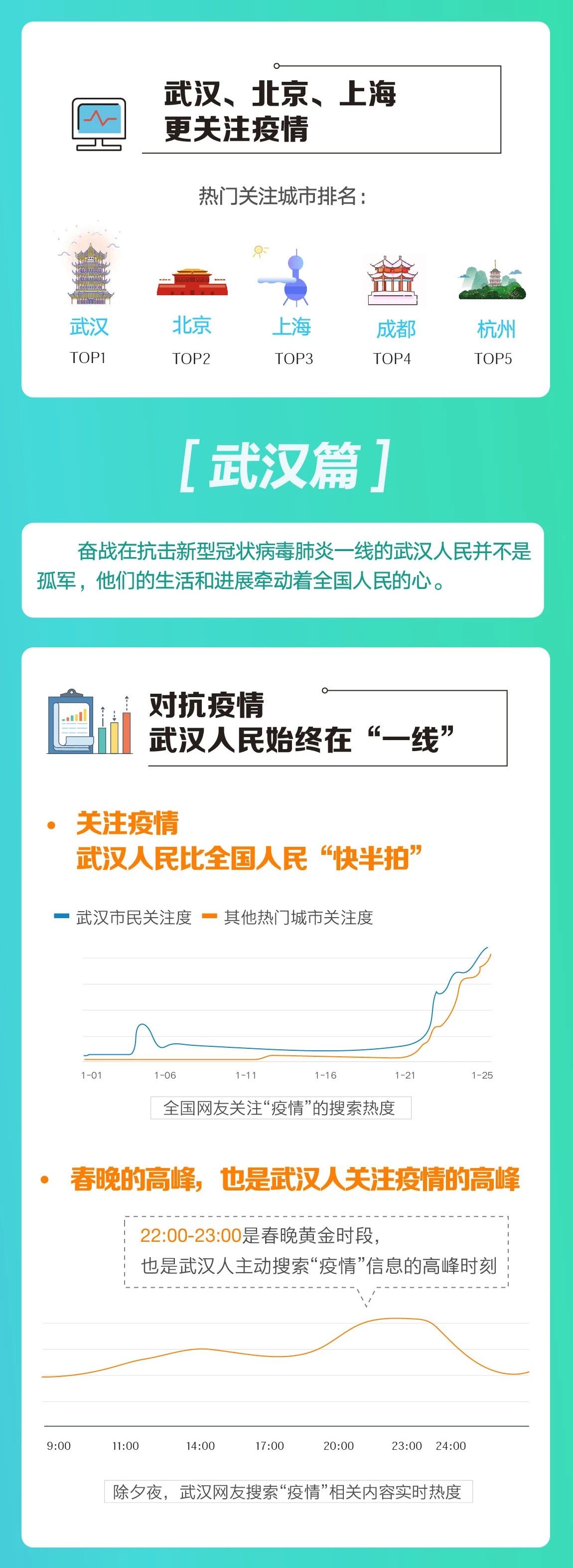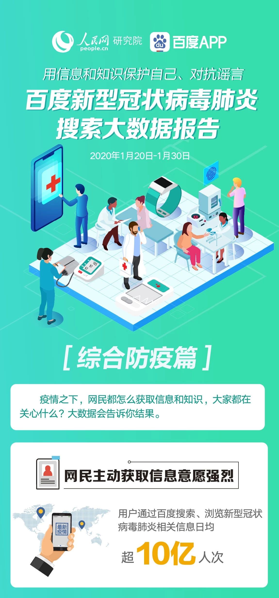 报告显示,用户通过百度搜索、浏览新型冠状病毒肺炎相关信息日均超过10亿人次。当下人们更关注疫情进展及防疫知识:疫情地图、疫苗研发进展、口罩不必一次一换等问题的搜索量均有明显上升;同时,与新型冠状病毒相关的延展信息也成为搜索热点,如火神山雷神山医院、非典是怎么控制住的信息等。